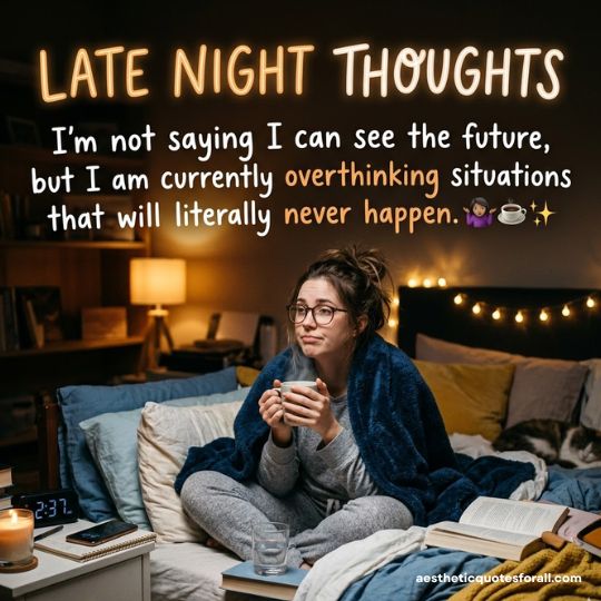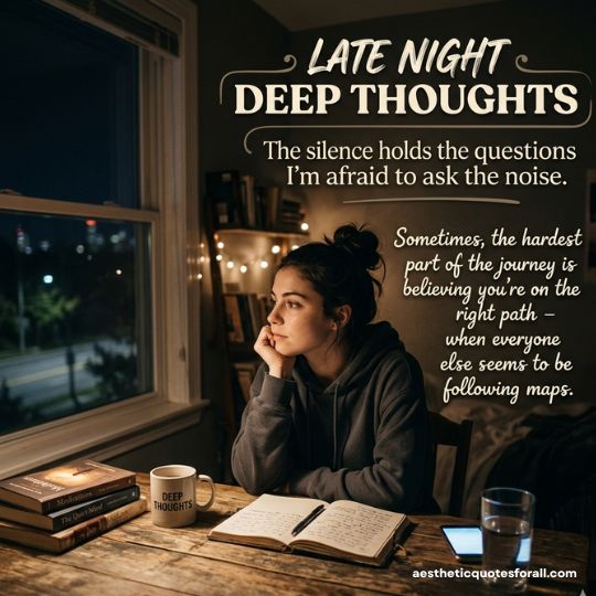 Late nights have a way of making your thoughts louder and deeper. When everything is quiet, your mind starts to wander, reflect, and sometimes overthink. This collection of quotes captures those real feelings—whether they are deep, sad, funny, or simply honest. If you often find yourself stuck in your head, you might also relate to quotes for overthinkers who can’t stop thinking. Some nights bring a sense of heaviness, much like sad quotes about life or even deeper emotions found in grief quotes. But late night thoughts are not always about pain—they can also help you grow, heal, and move forward, just like quotes about moving on and letting go. And if you enjoy short but powerful words, don’t miss these short deep quotes that speak volumes.